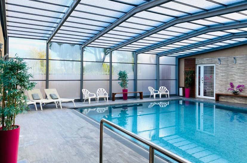 Aire de jeux Bar Bibliothèque Piscine Piscine couverte Piscine chauffée Salle de réunion Restaurant Solarium Terrasse Jardin Abris pour vélo ou VTT Parking Parking privé Parking autocar Parking à proximité