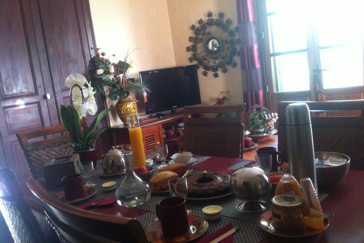 Petits déjeuners pouvant être pris dans la cuisine d'été ou dans le jardin sur les terrasses.