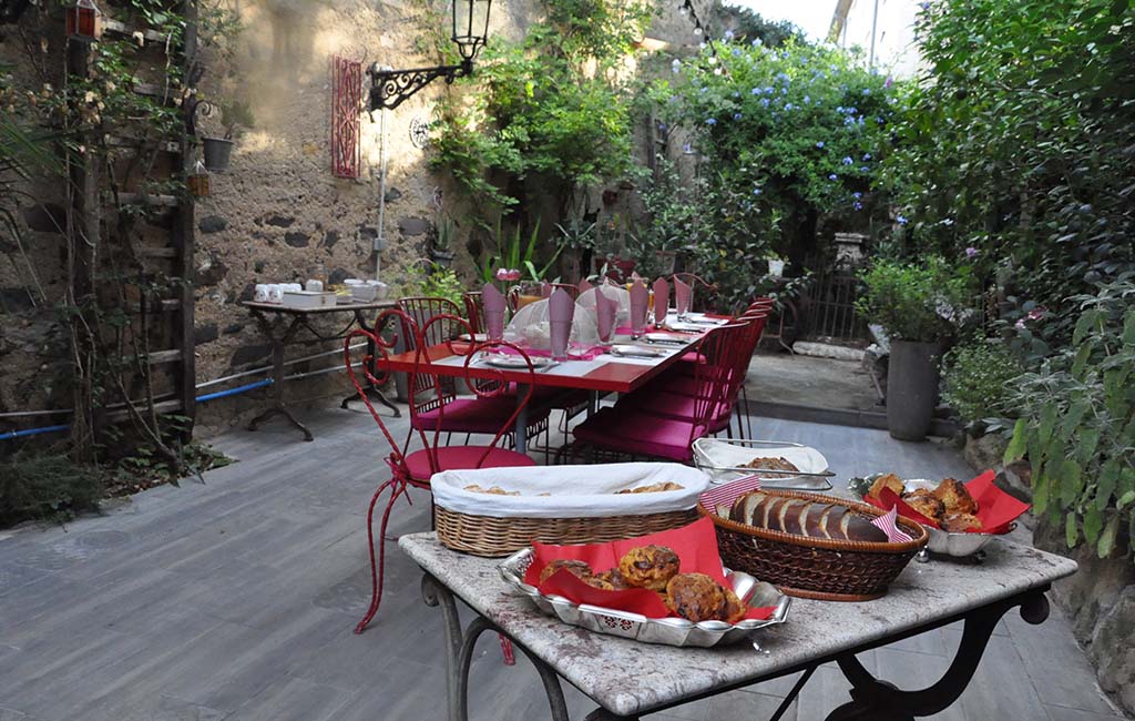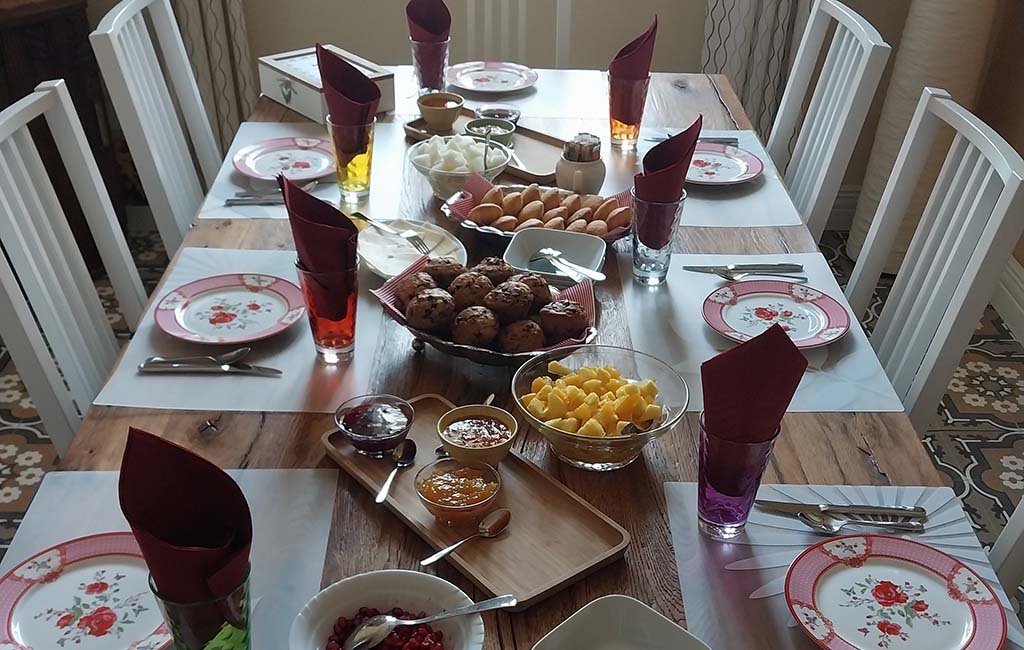 Les petits déjeuners sont servis en extérieur dans la cour ou le jardinet (tables séparées par chambre ou famille,) ou encore dans la salle à manger ou le patio en cas de mauvais temps.