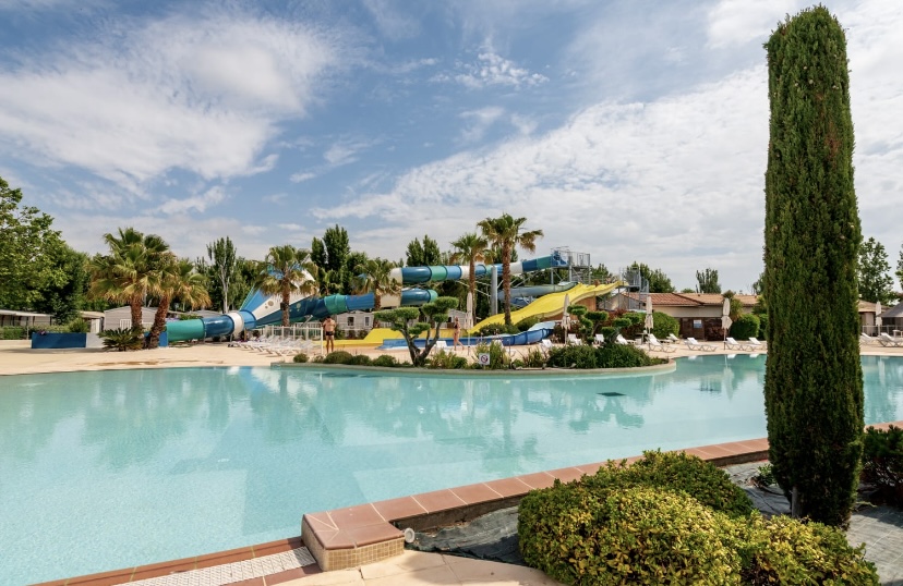 Camping 4* situé à côté de la plage et à quelques minutes du Canal du Midi. Le camping dispose d’une très belle piscine bleu lagon de 1500 m² ainsi que de toboggans et pataugeoires.
