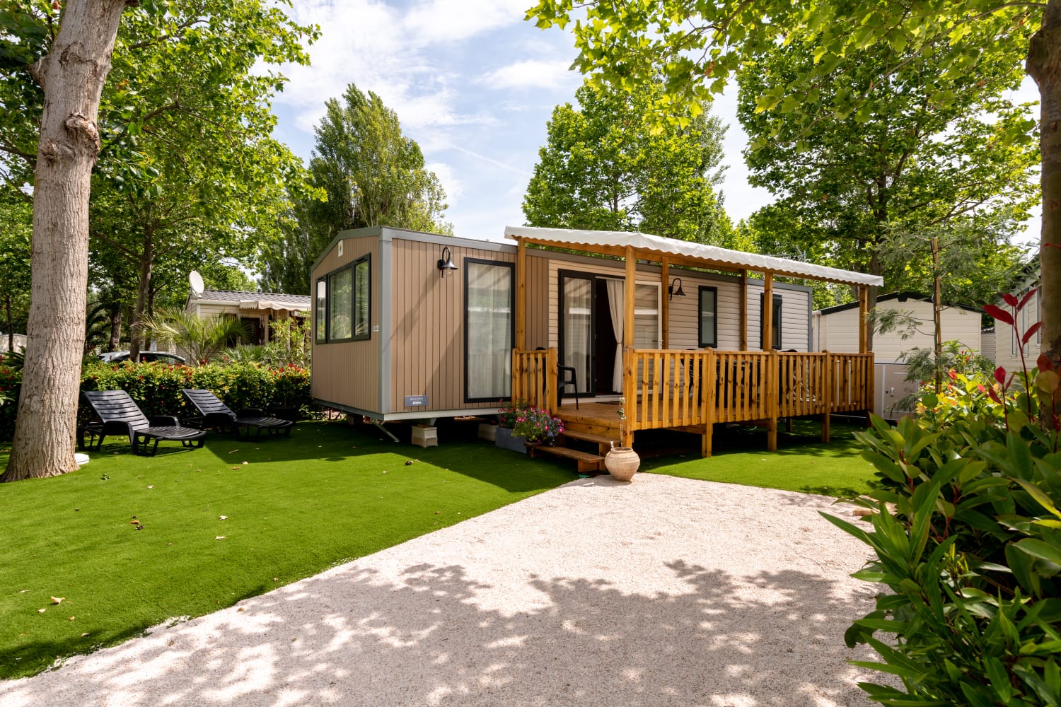 Hébergements dans des mobil-homes haut de gamme pouvant très bien équipés, pouvant accueillir jusqu’à 8 personnes dans un confort 4*.