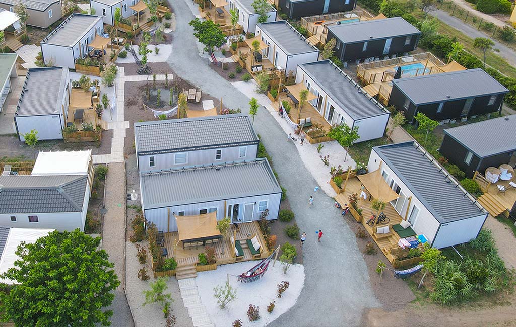 Les hébergements vont du Mobil Classik au Cottage luxueux, dans un quartier piéton et fleuri avec des prestations hôtelières. N'hésitez plus, venez vivre La Clape Village !