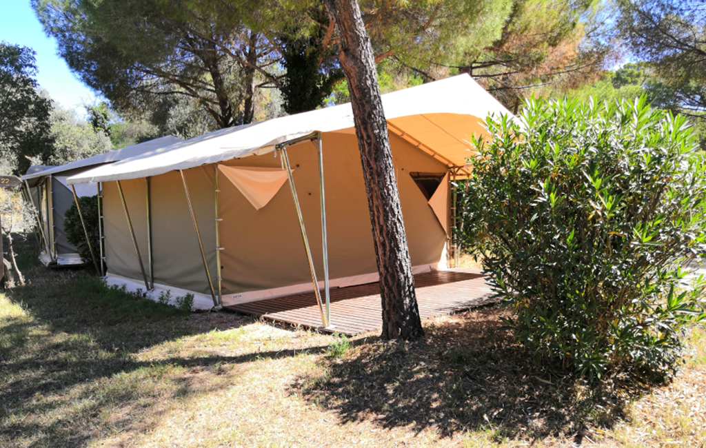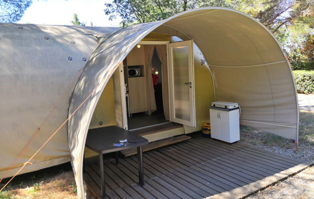 Le camping propose également le mobil-home insolits COCO à la forme ronde recouverts d’une toile. Ses murs sont rigides et isolés, sa porte d’entrée ferme à clef. Il peut recevoir 4 personnes avec ses 2 chambres équipées.