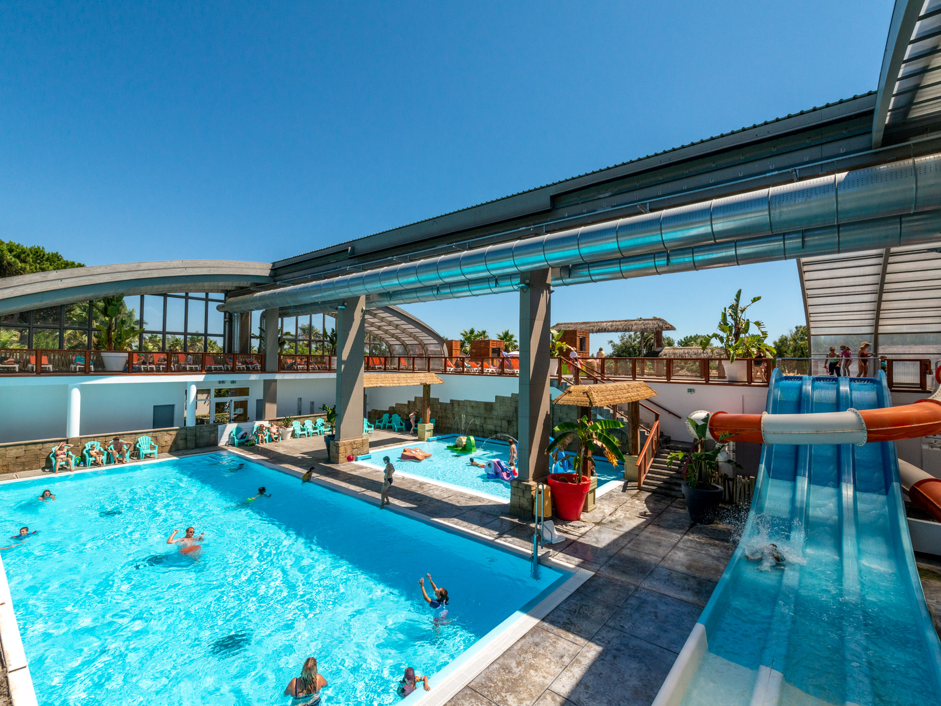 Ce camping est lié aux campings Farret et la Plage à environ 300 m. Vous aurez accès à toutes les infrastructures et services : 3 espaces aquatiques dont 1 piscine couverte avec toboggans, animations, club enfant, spa, commerces, restaurants...