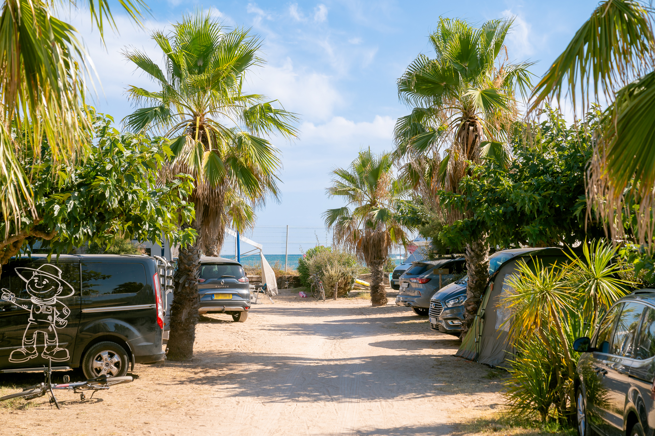 Camping calme et familial en bord de mer avec un accès direct sur la plage. Les emplacements sont spacieux (plus de 100 m²).