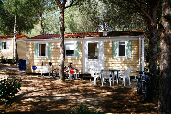 Camping situé dans un bois de pins et aménagé en domaine résidentiel : mobilhomes.