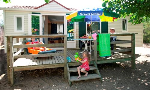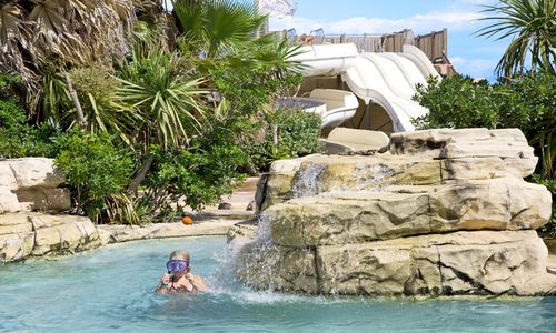 Dans ce camping situé en bord de plage, vous séjournerez en mobil-home et profiterez aussi d'un bel espace piscine avec toboggan aquatique.