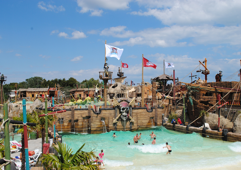 Nombreuses prestations : parc aquatique à thème pirate de 8500 m², salle de sport, salle et aire de jeux, tennis, tennis de table, terrain multisports, restauration…