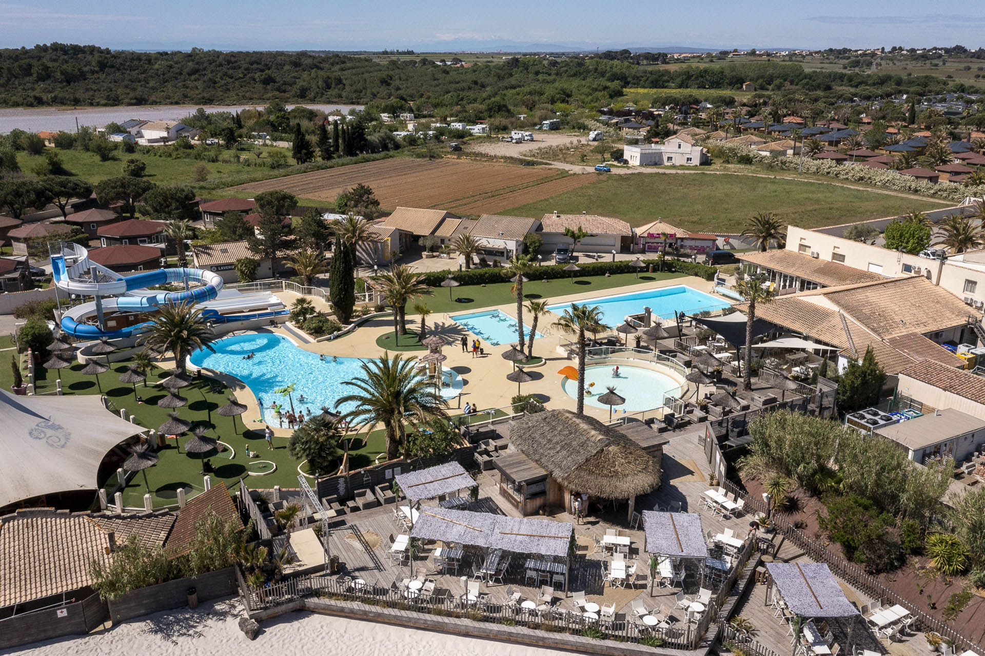 4 espaces aquatiques avec lagon et toboggans ; Spa avec sauna, hammam et espace balnéo ; A moins de 10 minutes de Vias Plage et du Cap d'Agde
