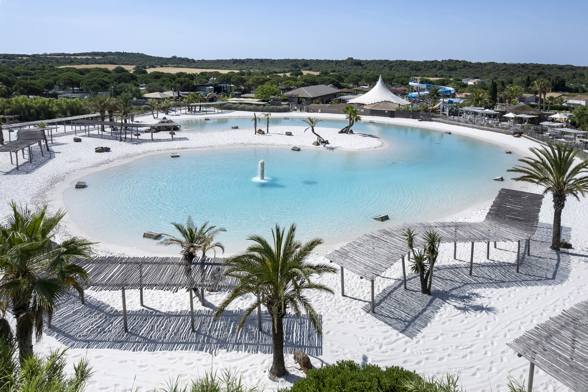 Des vacances les pieds dans l'eau avec 4 complexes aquatiques dont un lagon naturel sur 10.000 m² d'eau turquoise, de sable fin et de palmiers.