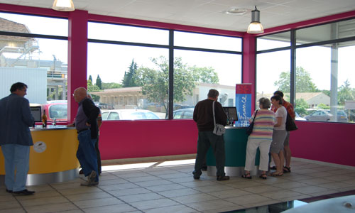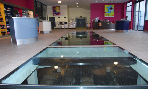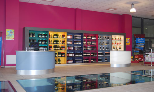 L’espace dégustation-vente est conçu autour de bornes «oenothématiques», pédagogiques et ludiques présentant les cépages, leurs caractéristiques et les modes de vinification.
