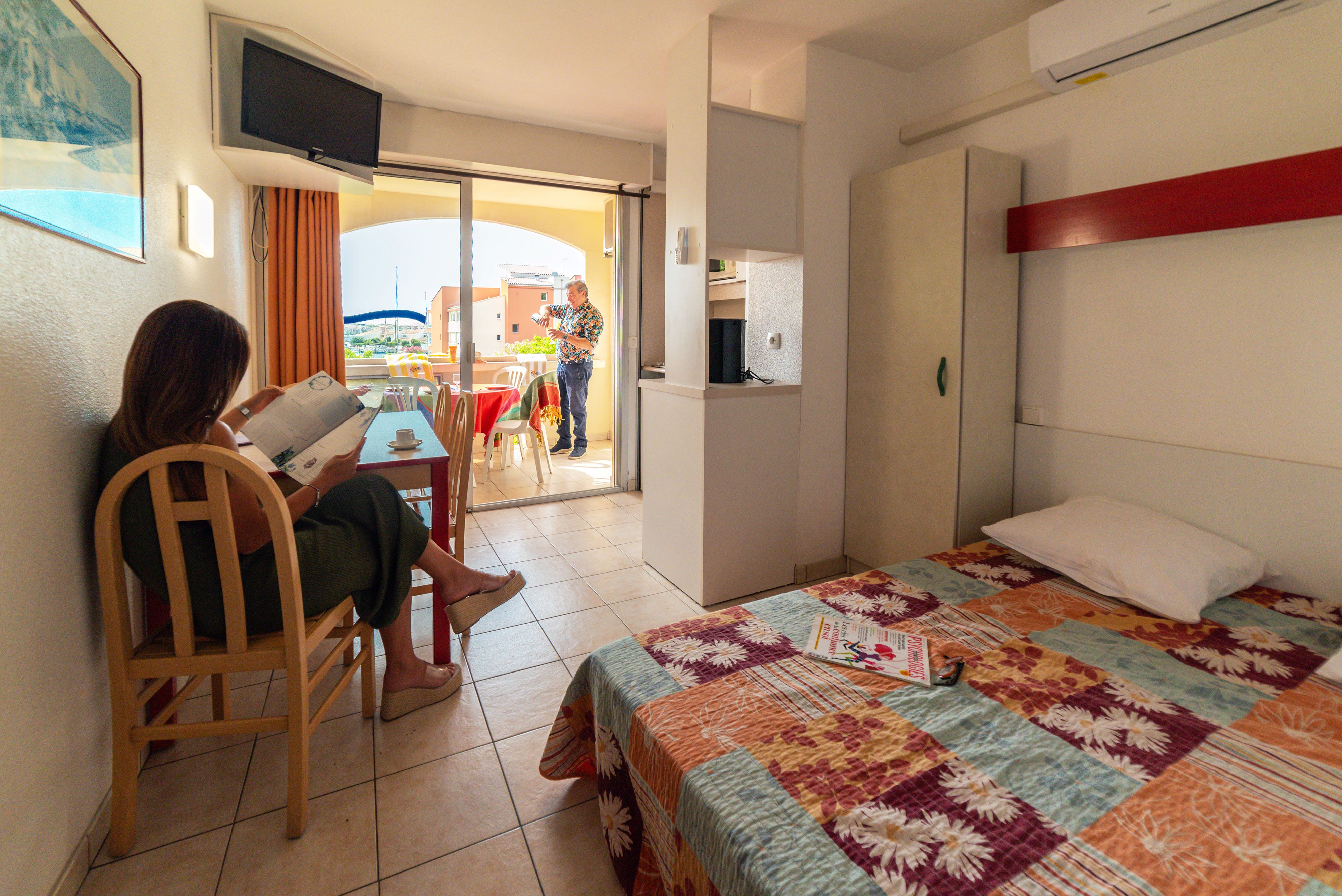 En coeur de station, à deux pas du port de plaisance et à proximité du centre des congrès, vous apprécierez le confort de ses studios et appartements climatisés.