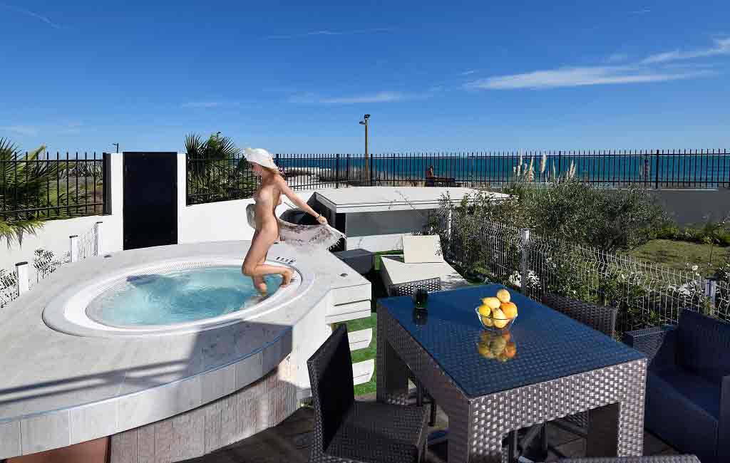 Cette résidence naturiste à la décoration contemporaine mêlant luxe et élégance est située à 50 m de la plage.